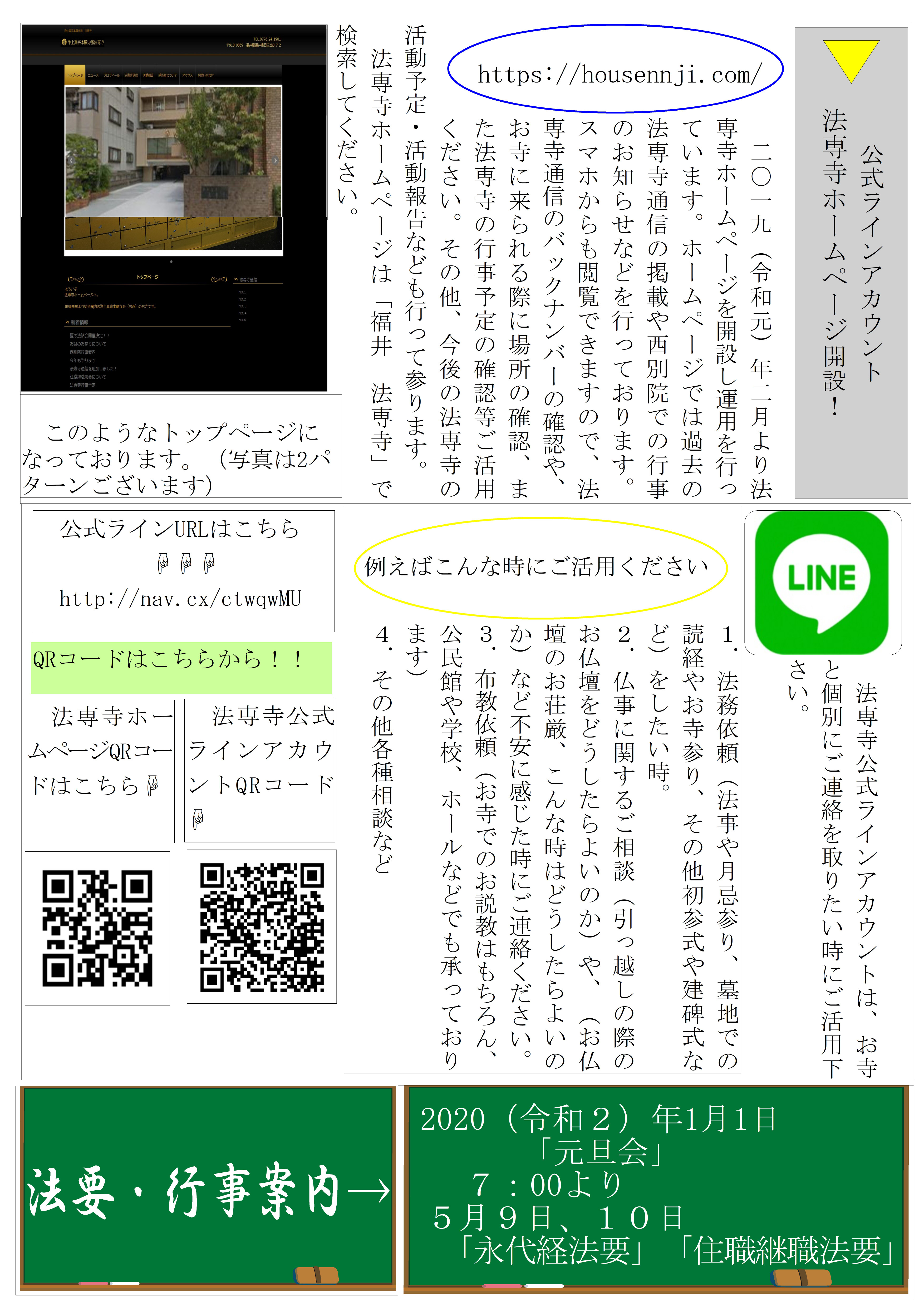 ・裏面:ホームページ、公式LINEアカウント始めました!
